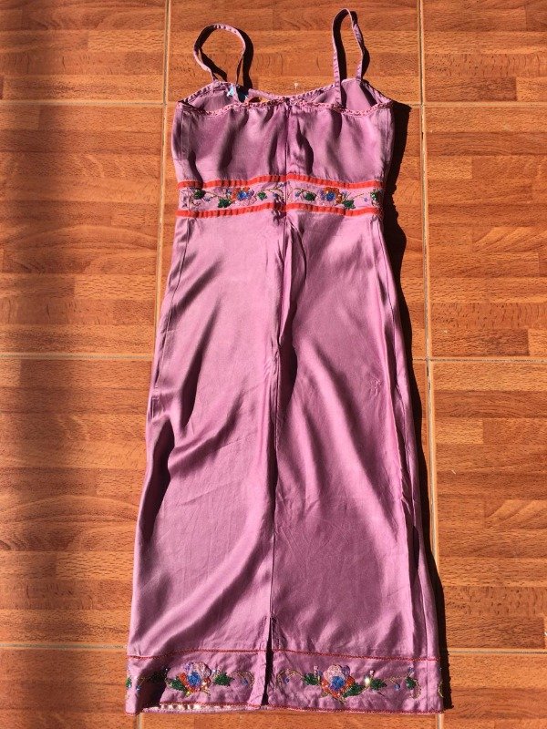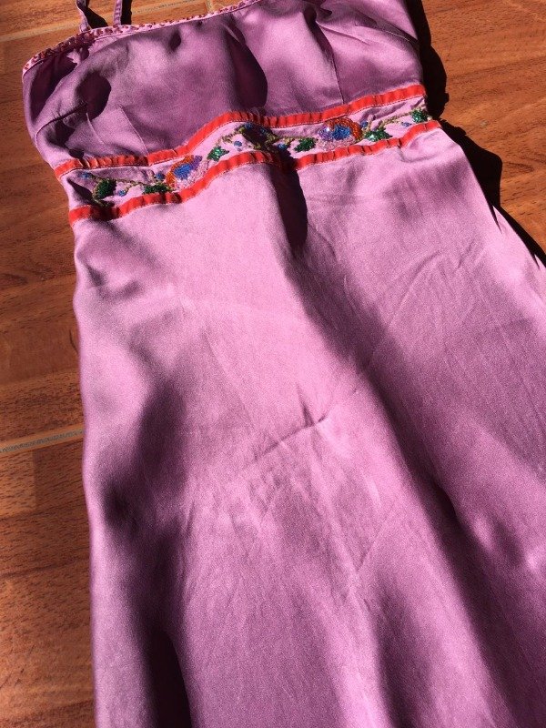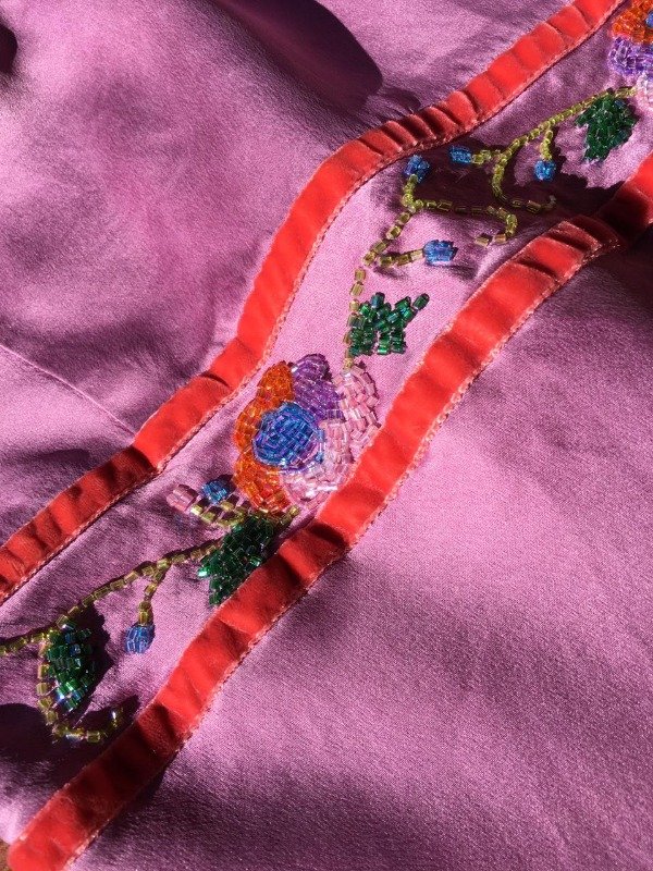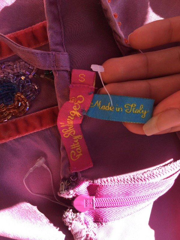 Hermosa decoración con mostasillas, lindo color, con cierre atrás, el detalle es que la tela cuando la puse a lavar se opaco un poquito pero esta perfecta, hasta tiene la etiqueta, importado de Italia.